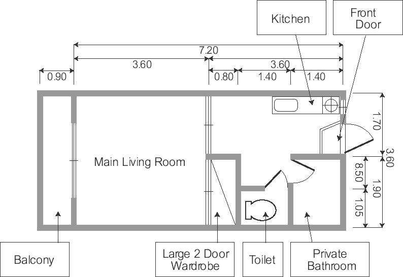 概念: 合計3棟の建物があります。アパートメントは畳敷きではなく、洋風のスタイルです。床は磨かれた木製です。各アパートメントの広さは26平方メートル(約280平方フィート)で、バルコニーの広さは3.2平方メートル(約35平方フィート)です。各部屋にはユニットシャワー/バス付きの専用バスルームがあります。洋式トイレもあります。トイレとバスルームは別々になっているため、アパートメントの共有が容易です。アパートメントには冷暖房、大型ワードローブ、キッチンが備わっています。ヤマサは冷蔵庫、電気コンロ、電気炊飯器を提供しています。ガスコンロはありません。メインルームにはテレビ、デスク、椅子、勉強用ランプ、ベッド、書棚が備わっています。