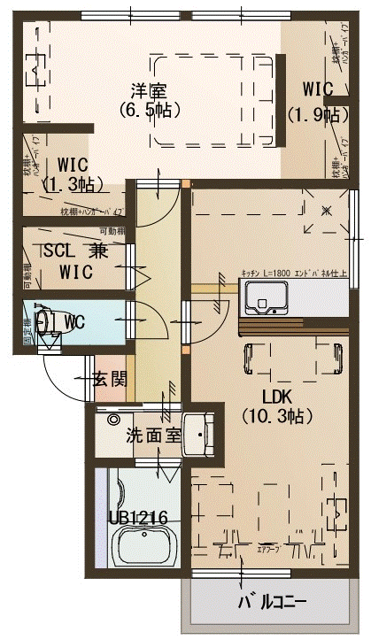 閑静な住宅街に位置するL邸。 約35平米の部屋にはベッドルーム、ダイニングルーム、ウォークインクローゼット、トイレ、バス、洗面所、ベランダがあります。