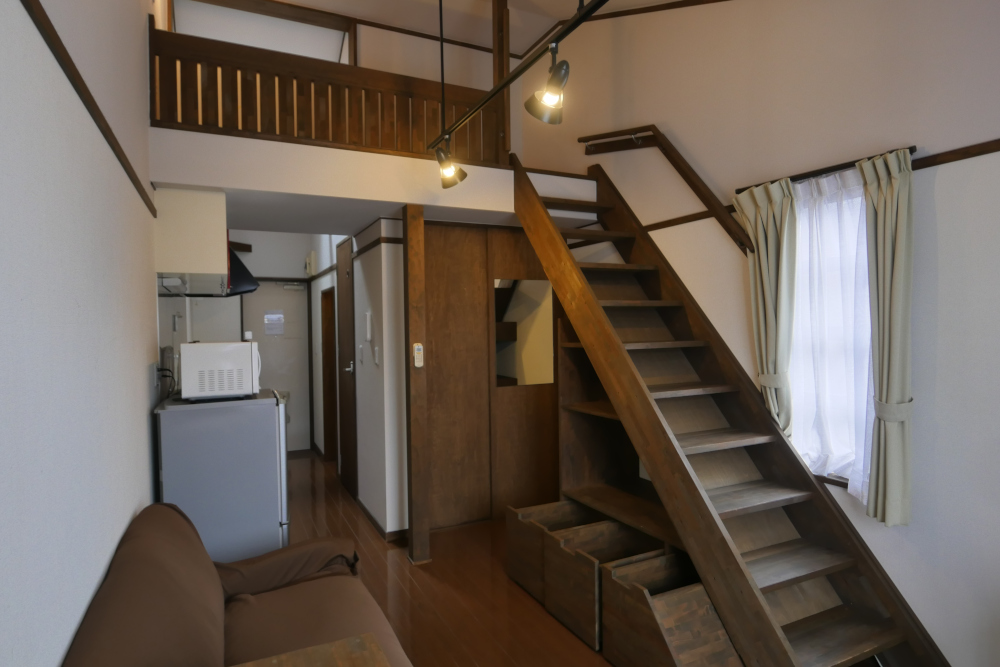 概要: アパートメントは洋風で、2つの設計タイプがあります。タイプA(6アパートメント)にはロフトがあり、総面積は26.3 m2(床面積22.8 m2、ロフト面積3.5 m2)です。タイプB(2アパートメント)の総面積は30 m2です。どちらも天井が高く、エアコン/暖房、大きなワードローブ、そしてキッチンには流し台、冷蔵庫、電気コンロ(2口のIH調理器)、電子レンジ、トースター、電気炊飯器、およびいくつかの調理器具(フライパン、鍋、やかん)が装備されています。ガス調理はできませんが、長期滞在の学生の中には自分でガスコンロを購入し、使い捨てのガスカートリッジを使用する方もいます。YAMASA学院では洗濯機、勉強机&椅子、デスクランプ、ダイニングテーブルと椅子、ソファ、本棚を提供しています。タイプAのアパートメントにはロフトに泡マットレスがあり(階段でアクセス、はしごではなく)、タイプBのアパートメントにはセミダブルベッド&マットレス(幅120cm、長さ210cm)があります(シーツなどは提供されていません)。Villa 3 & 4の隣には屋根付きの自転車置き場があり、20メートル以内の距離にあります。Villa 5のアパートメントは広い調理スペース、高い天井とドアの開口部、改善されたエネルギー効率、そしてより良いプライバシーとセキュリティを提供します。部屋は175 cm(5フィート7インチ)以上の身長の学生が日本で快適に生活できるように意図的に設計されており、机、流し、調理スペース、シャワーヘッドなどがすべて上げられているため、腰痛や不快感を防ぐことができます。すべてのアパートメントは十分な照明があり、快適な単身者用に設計されており、二重ガラスの窓と広範な防音により、外部の騒音による生活と学習環境への邪魔が減少します。ソファを備えた単身者用のアパートメントとしては、これが唯一の設計となっています。